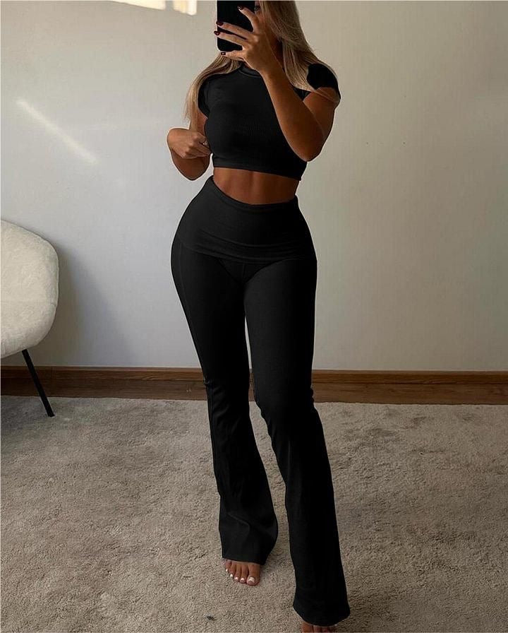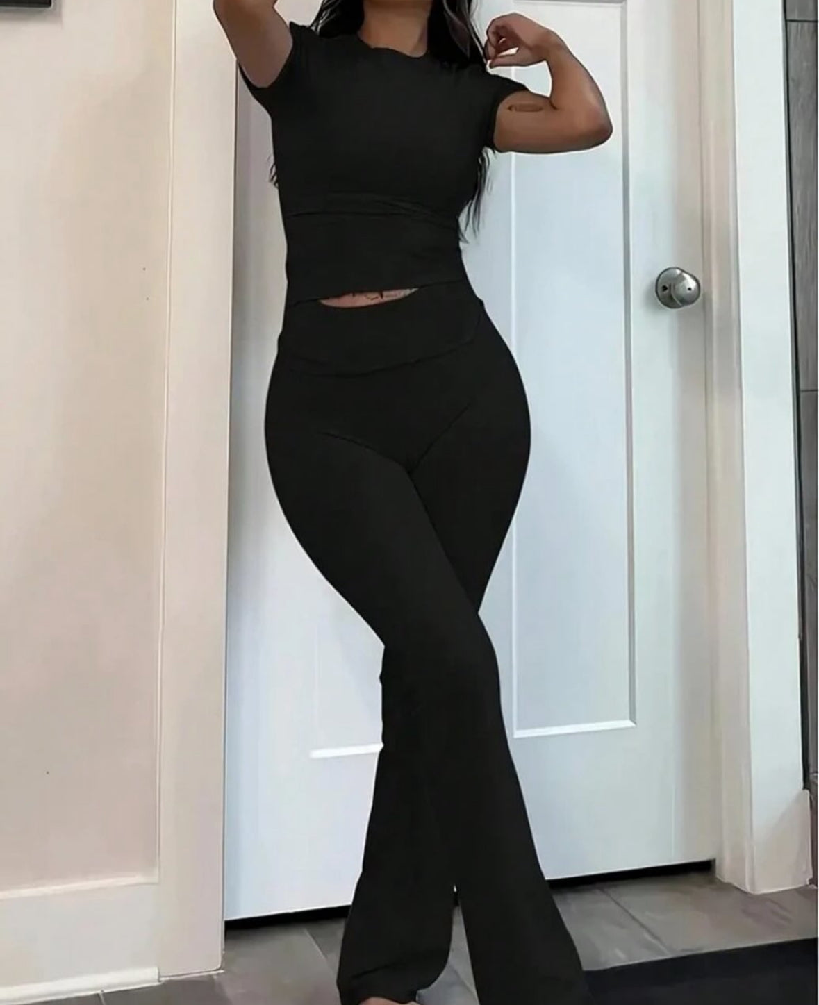 Ensemble deux pièces à manches courtes et pantalon évasé